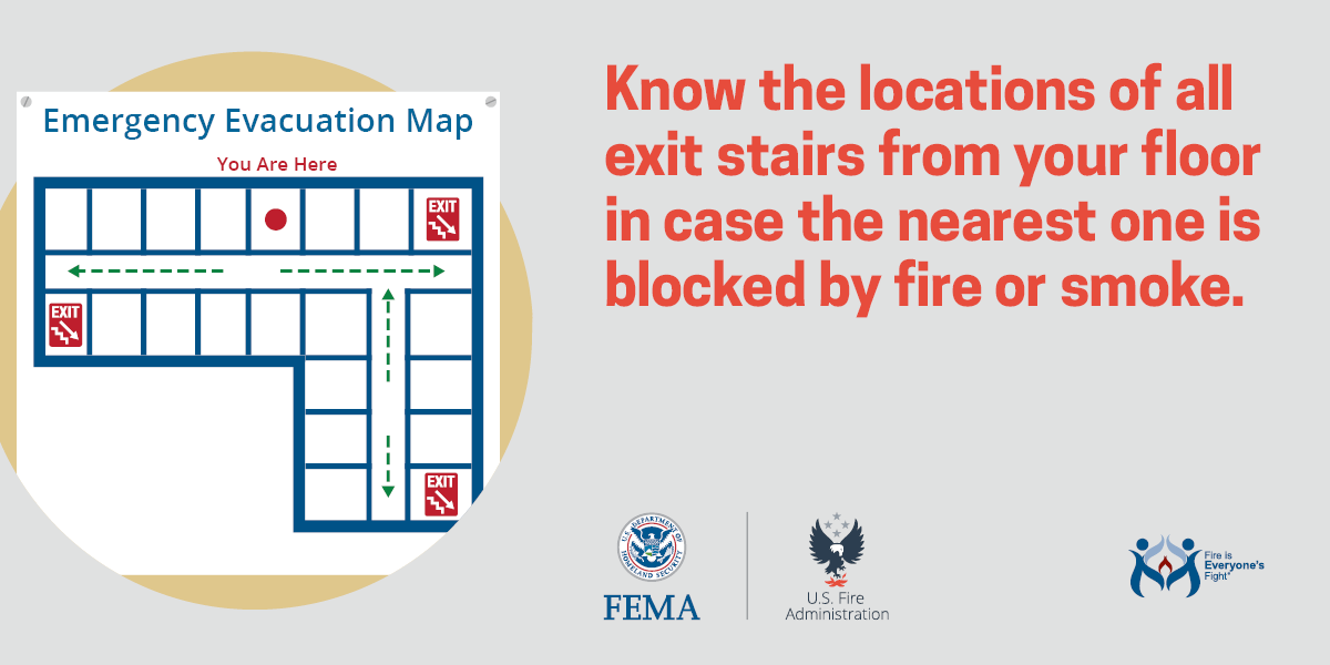 - Know where all the exit doors and stairs are on your floor.